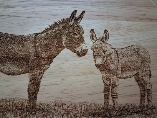Engraved Donkey & Foal Cheese Board Set with Tools - Supports Animal Charities