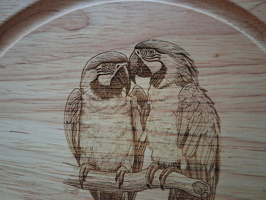 Macaws 'Love Is...' Design Cheese Set with Tools (21cm dia. x 4cm).