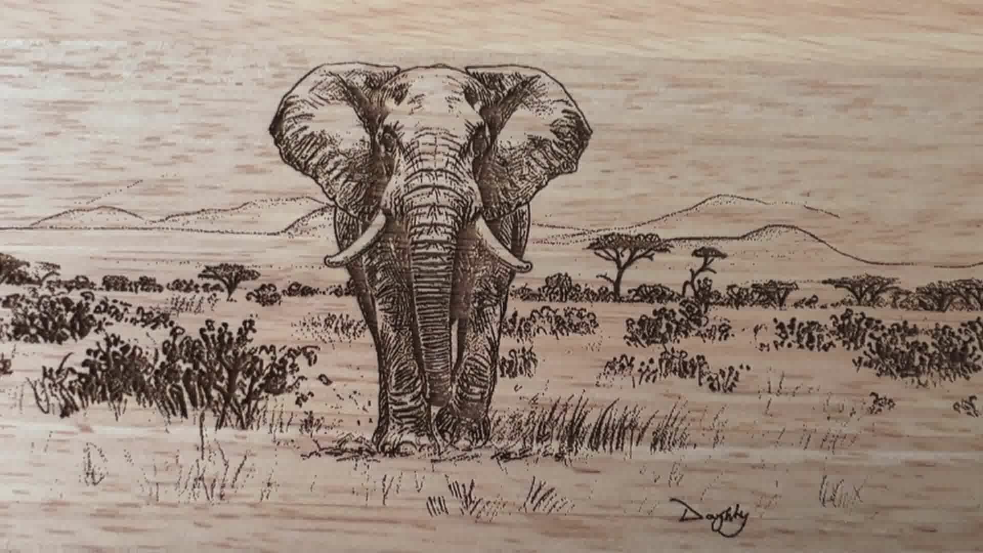 This stunning chopping board features an Elephant & Acacia Tree designs, created from David Doughty's photographs.
